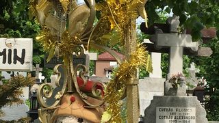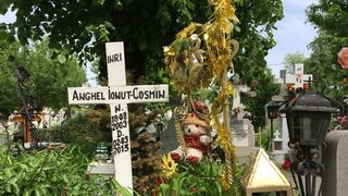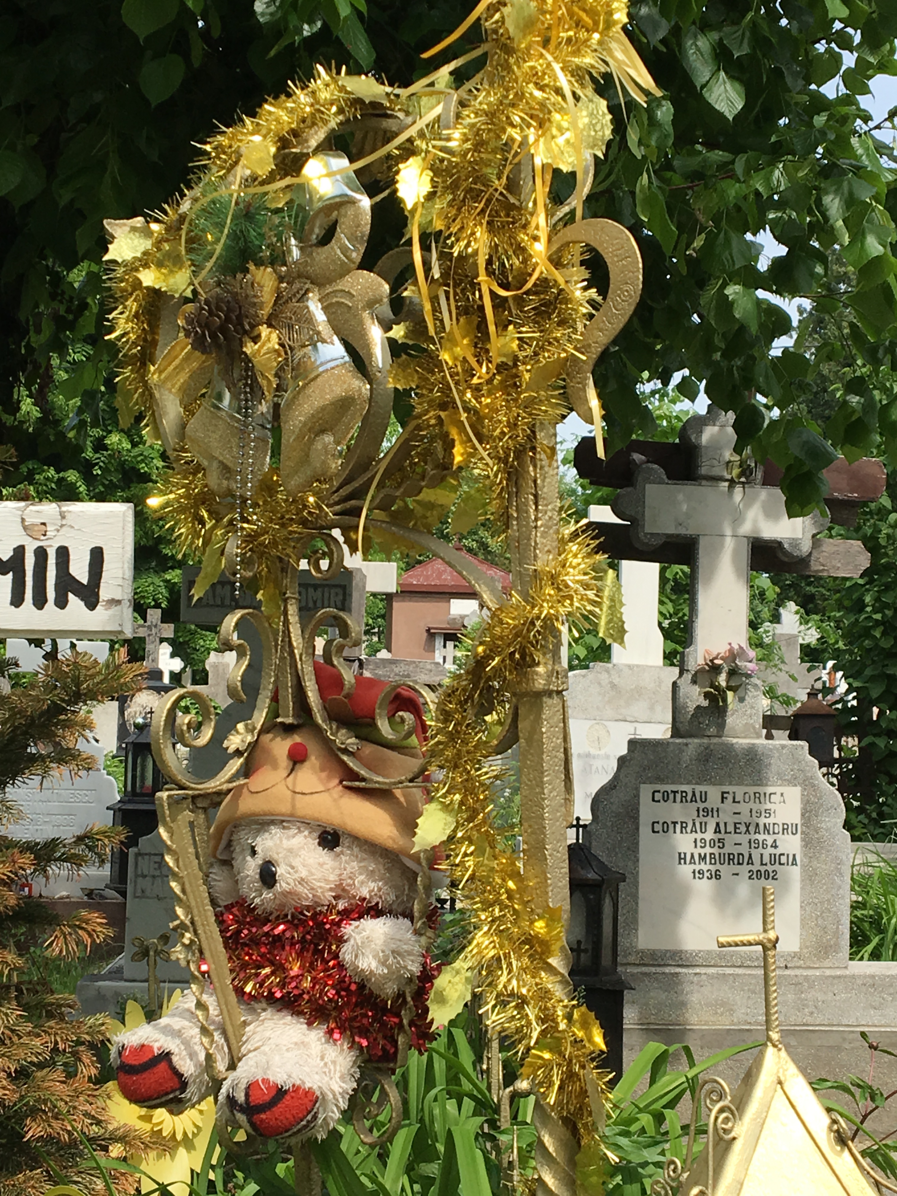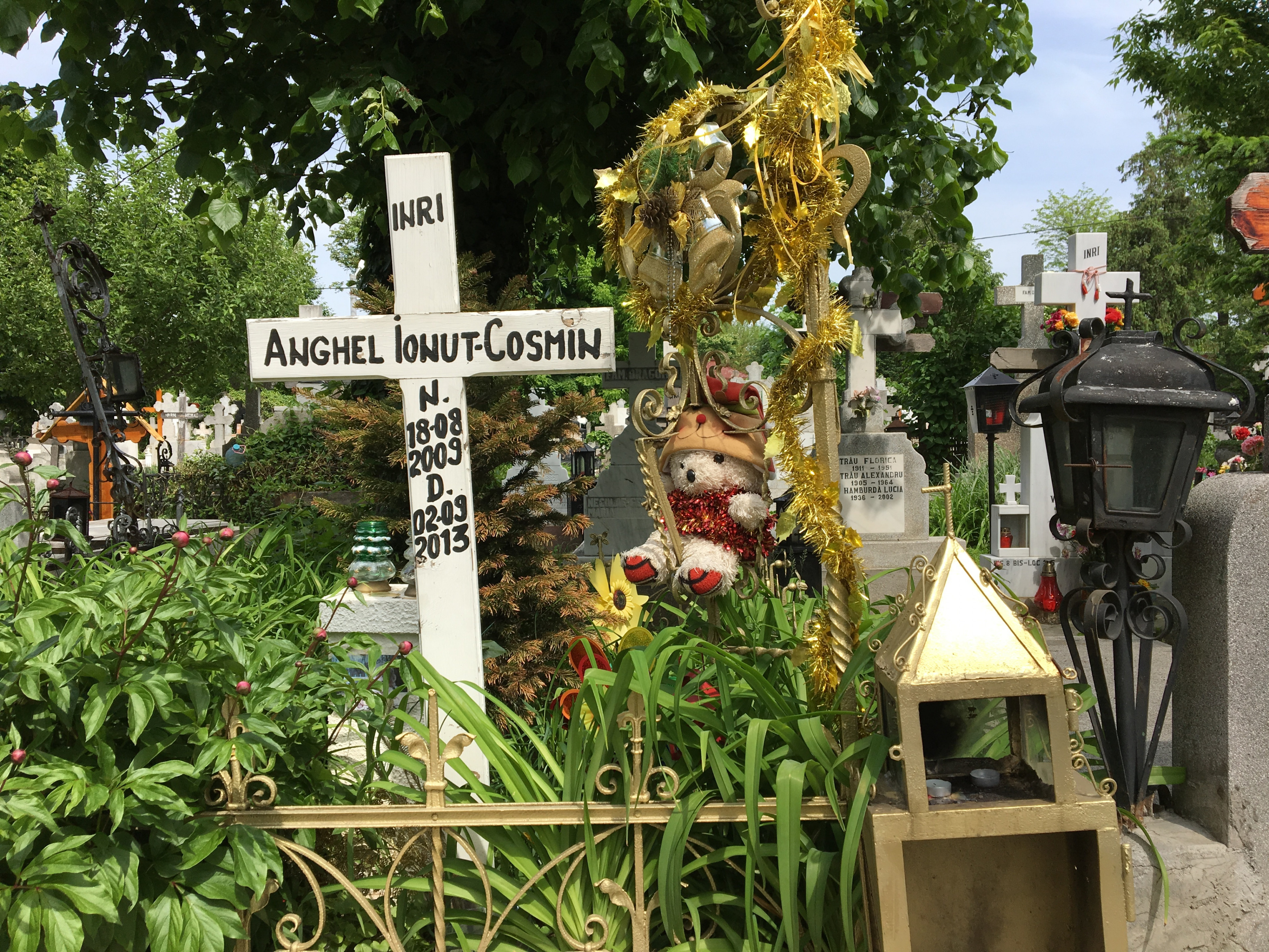 Mormantul copilului, din cimitirul Sfanta Vineri, arata ca un loc de joaca, o oaza vesela si colorata intr-un spatiu trist. Parintii au decorat locul de veci cu jucarii de plus, plante si ornamente de Craciun, iar in mijloc s-a inaltat un bradut.