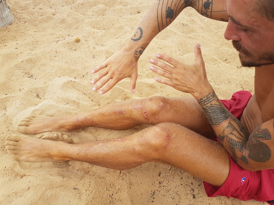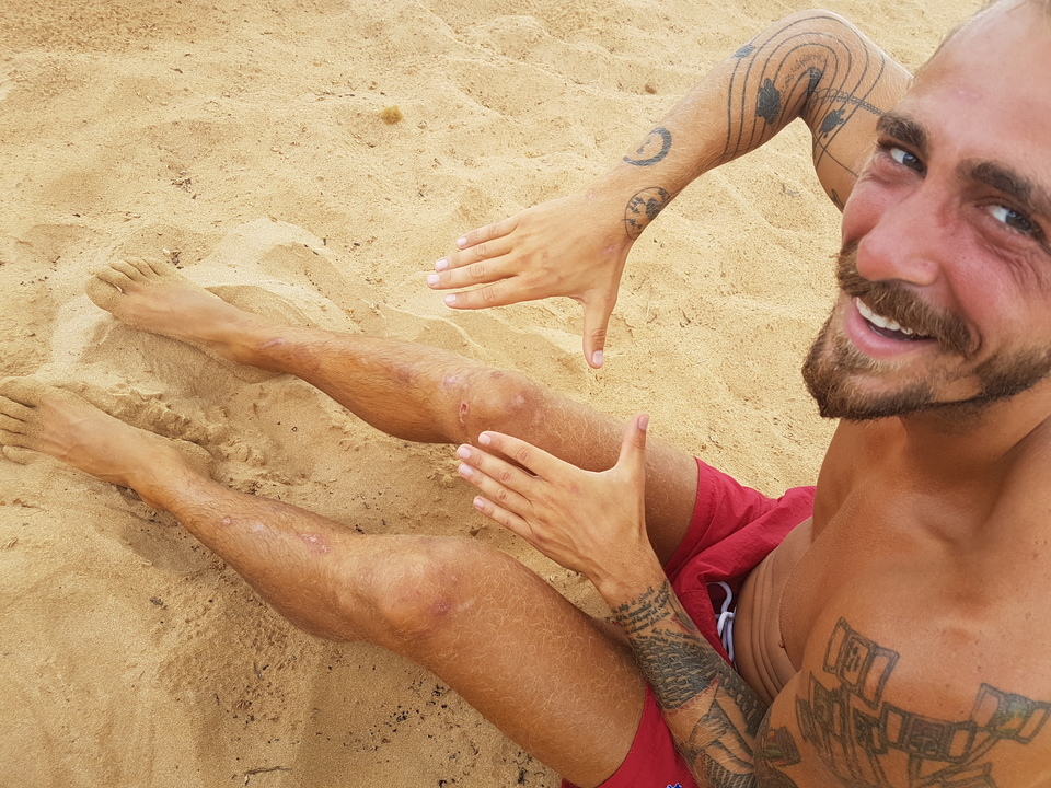 La 4 luni de la castigarea trofeului Exatlon, Vladimir Draghia este in continuare plin de cicatrice pe picioare.
