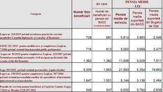 Potrivit CNPP, 728 de persoane care au lucrat în Corpul Diplomatic și consular beneficiază de pensie specială. Pensia medie din acest domeniu este de 5.814 de lei, din care 2.546 de lei suportaţi de la bugetul de stat.