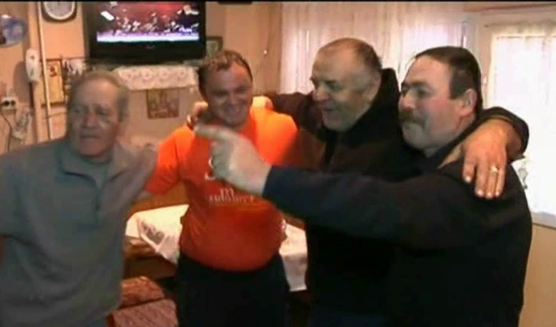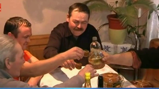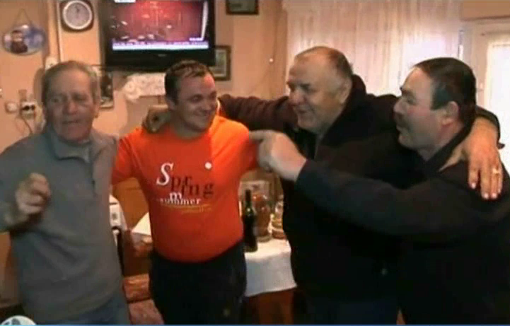 Petrecaretii si-au dat intalnire in curtea unui consatean din Peciu Nou. Invitat de onoare a fost, evident, Nicusor- domnul sprinten, in tricou portocaliu, care a fost cinstit cu o palinca facuta-n batatura