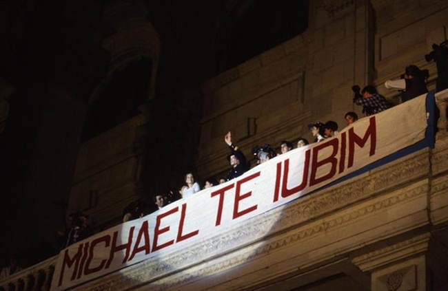 În drum spre hotel, în timp ce venea de la aeroport, Michael a oprit coloana de maşini la Universitate, unde a depus flori şi s-a recules în genunchi la troiţa dedicată eroilor dispăruţi la Revoluţia din decembrie 1989! Comparativ, în decembrie 2018, nici un membru al guvernului Dăncilă- nici măcar prim-ministrul sau şeful PSD Liviu Dragnea- nu au făcut acest lucru în amintirea celor care s-au jertfit pentru libertate acum aproape trei decenii.