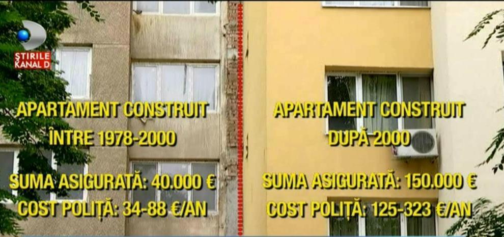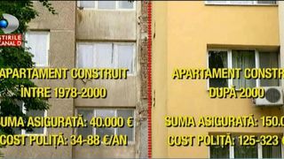 Pentru un apartament construit intre 1978 si 2000, o asigurare de pana in 40 de mii de euro va scoate din buzunar cel mult 88 de euro pe an.