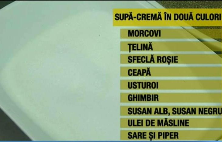 Plina de vitamine si minerale, supa-crema in doua culori va scapa numaidecat de punga de medicamente! Aromata si usoara, crema de legume este ideala mai ales in zilele in care gradele din termometru o iau la vale.