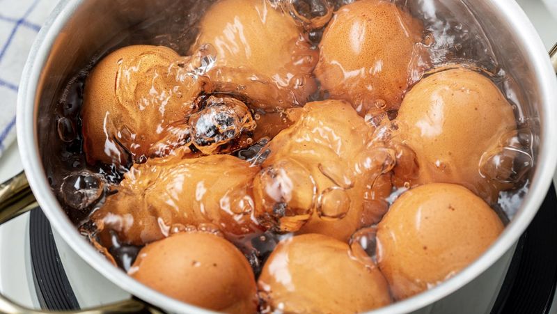 Alege un vas suficient de mare – dacă fierbi mai multe ouă, asigură-te că stau lejer în vas, nu unele peste altele;