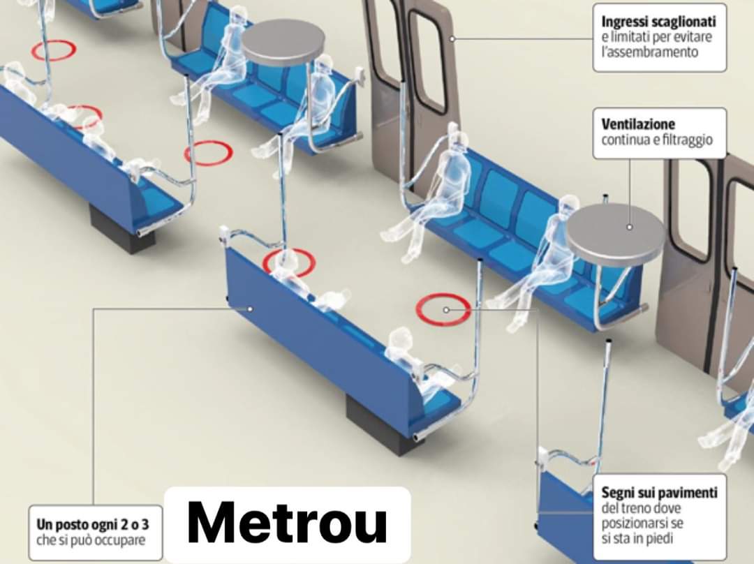 - in METROU vor putea sta doar doua persoane pe un sir de 5 scaune. Pe podeua metroului vor fi desenate cercurile unde pasagerii pot sta in picioare. De asemenea, in statiile de metrou vor fi facute anunturi daca pasagerii pot sa urce in tren sau trebuie sa l astepte pe urmatorul.