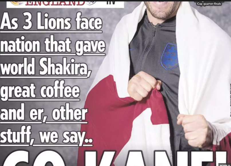 “As 3 Lions face nation that gave world Shakira, great coffe and er other stuff, we say…Go Kane! (n.r.