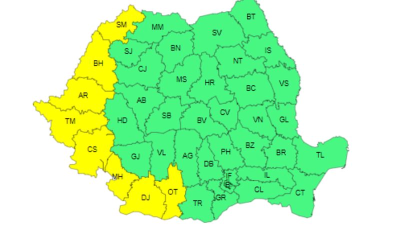 În acest weekend, în majoritatea regiunilor din țară temperaturile se vor încadra în normalul perioadei. În schimb, pentru regiunile din vestul României, meteorologii ANM au emis un cod galben de caniculă, valabil sâmbătă și duminică.