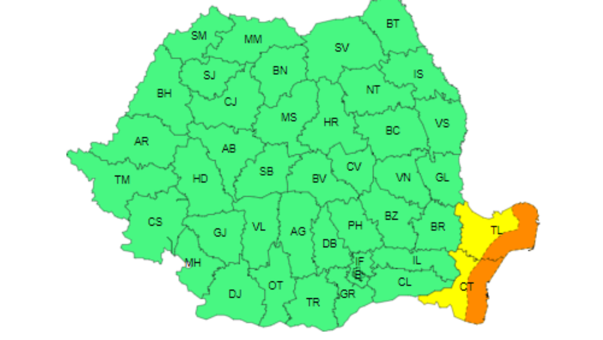 În zona litorală a județelor Constanța și Tulcea vor fi averse torențiale și descărcări electrice, iar în intervale scurte de timp sau prin acumulare cantitățile de apă vor fi de 25...30 l/mp și izolat de peste 40...50 l/mp, se arată în avertizarea de cod portocaliu emisă de Administrația Națională de Meteorologie.