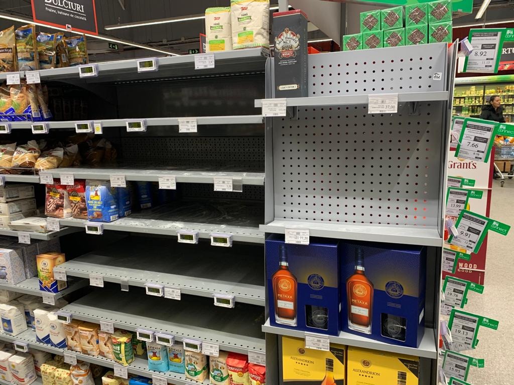 ”Fraților, au înnebunit românii! Opriți-vă, fratilorrrrr‼ Nu mai dați buzna de nebuni în magazine și peste tot să vă luați provizii pentru 5 ani! Suntem în filmele cu ZOMB️I?! Organizația Mondială a Sănătății a spus clar: NU este un virus cu mult mai periculos decât gripa obișnuită!!! Ați înnebunit de tot!? M-am dus în magazin să cumpăr ulei. De unde??? Zahăr, făină – NIMIC!!! Faceți-vă naibii și buncăre dacă tot v-ați apucat și vă luați după propagandă!!!