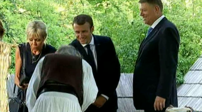 Nu se mai lasa dus cuplul prezidential francez din Muzeul Satului! Emmanuel si Briggite Macron s-au aratat fascinati de casele traditionale si costumele populare. Mai mult, au si primit, in dar, opinci de la un mestesugar autentic. Cucerit de sarmul frantuzesc, romanul nostru chiar a pupat mana inaltului oaspete.