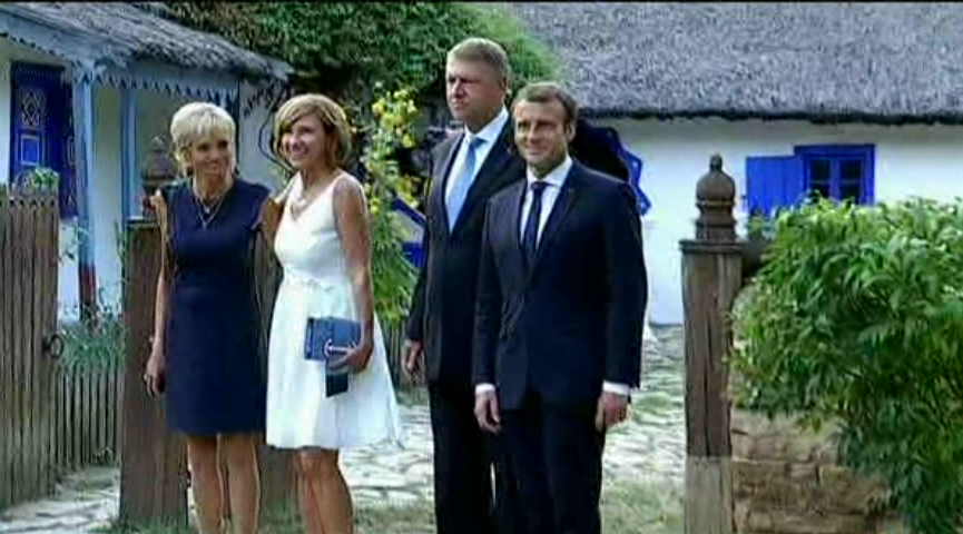 Cuplul prezidential francez, fascinat de casele traditionale si costumele populare. Ce cadouri au primit Emmanuel Macron si sotia sa de la un mester popular