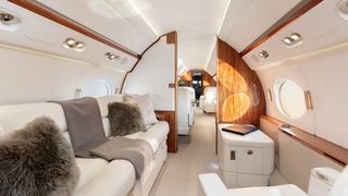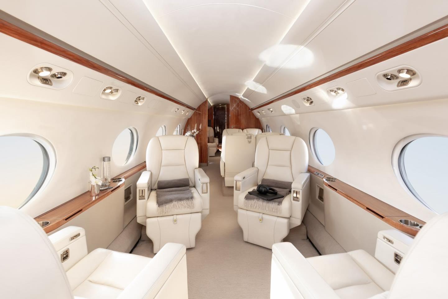 Gulfstreamul G550 închiriat de la Global Jet poate transporta maximum 13 pasageri, iar o parte dintre scaunele avionului se pot transforma în două paturi pentru o persoană și alte două paturi duble.