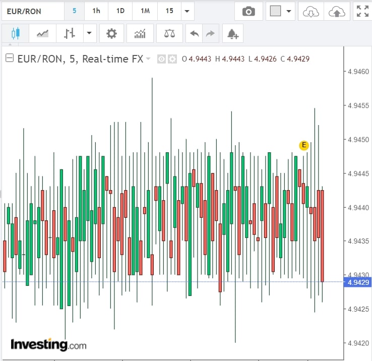 Pe piaţa interbancară, în dimineața zilei de 15 iunie 2022, un euro se tranzacționa în jurul valorii de 4.9443.