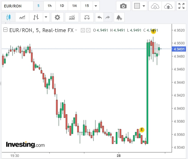 Ultimul maxim istoric al monedei euro a fost de 4.9495