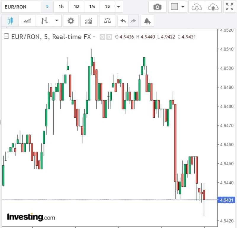 În ultima ședință a BNR de vineri, 1 aprilie, moneda euro a înregistrat o nouă scădere cu 0.0004 de unități, în fața leului românesc, ajungând la o cotație de 4.9454 lei.