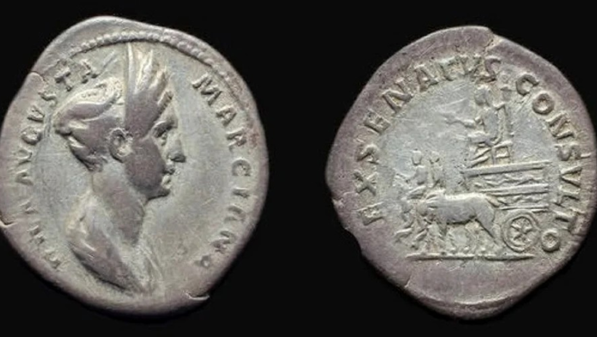 Pe monedă o regăsim pe Marciana, care a fost sora împăratului Traian.