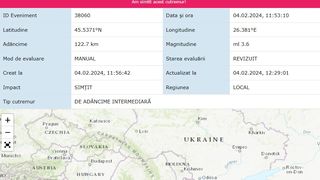 Cutremur în România. Seismul s-a produs în zona seismică Vrancea, la adâncimea de 122,7 km și a avut o magnitudine de 3,6 grade pe Richter.