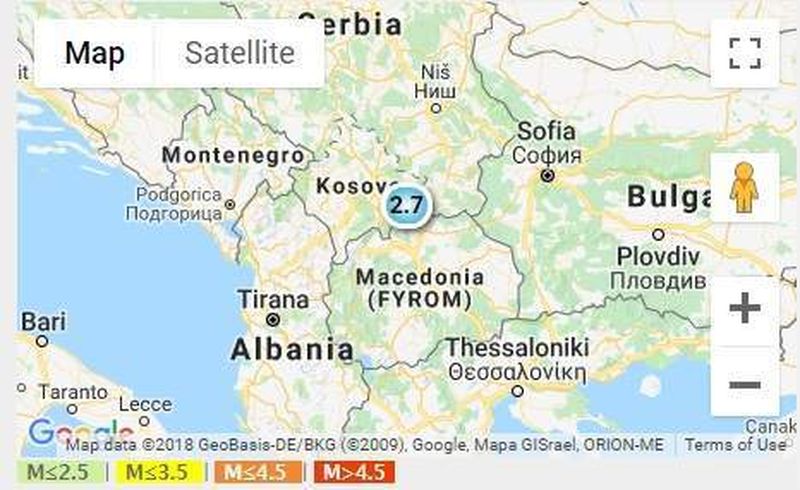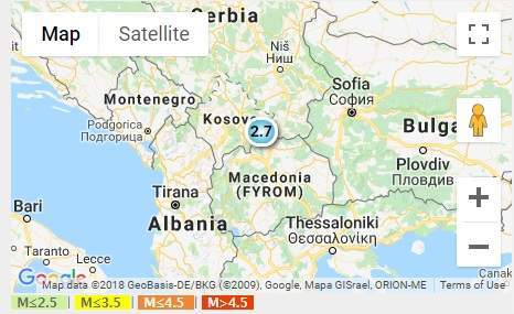 Cutremurul anuntat de Institutul National pentru Fizica Pamantului a avut loc in NORTHWESTERN BALKAN REGION si a fost localizat manual. Coordonatele sesimului au fost: lat 42.181; lon 21.5256.Magnitudine: 2.7, adancime: 3km.
