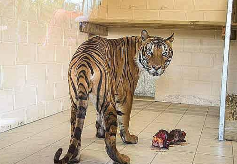 O femeie, în vârstă de 33 de ani, curăţa geamurile din incinta grădinii Zoo când a fost atacată de un tigru malayan, numit Cicip.
