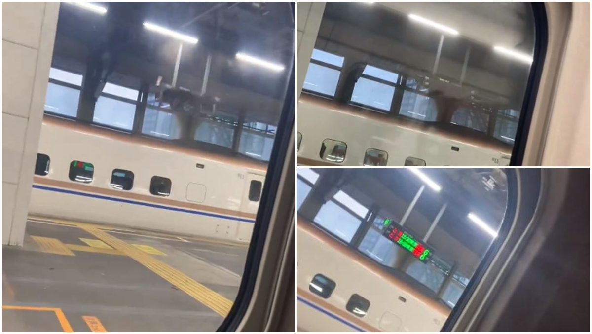 Tabelul care trebuia să afișeze orele de plecare ale altor trenuri este și el filmat de călători și se poate vede cum începe să se clatine în față și în spate, ca în bătaia vântului.