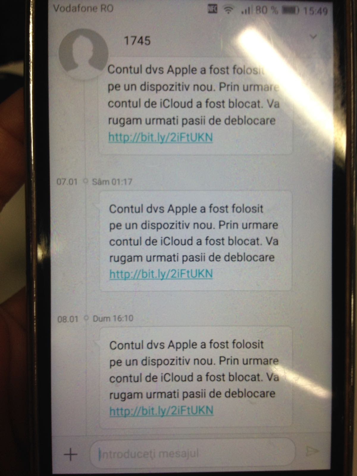 De aproximativ 3 luni, Romania este tinta unui atac de tip „phishing” fara precedent. Sute de romani au reclamat ca au devenit victimele hackerilor, dupa ce au accesat un link primit prin sms, care insotea urmatorul mesaj: „Contul dvs. Apple a fost folosit intr-o locatie noua. Pentru siguranta dv am blocat contul de iCloud. Va rugam urmati pasii de deblocare”.