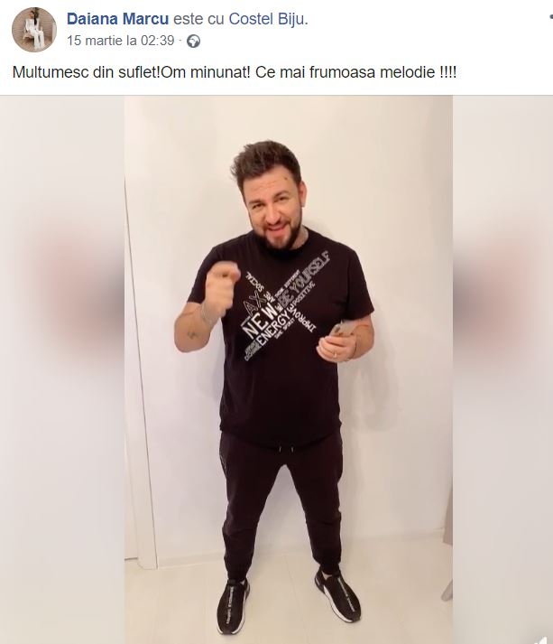 Daiana Marcu și Costel Biju. Daiana de la „Puterea Dragostei” a atașat și ea un mesaj lângă melodia de dragoste transmisă de Biju: „Mulțumesc din suflet!Om minunat! Ce mai frumoasă melodie!!!”.