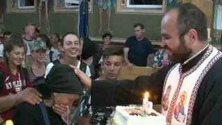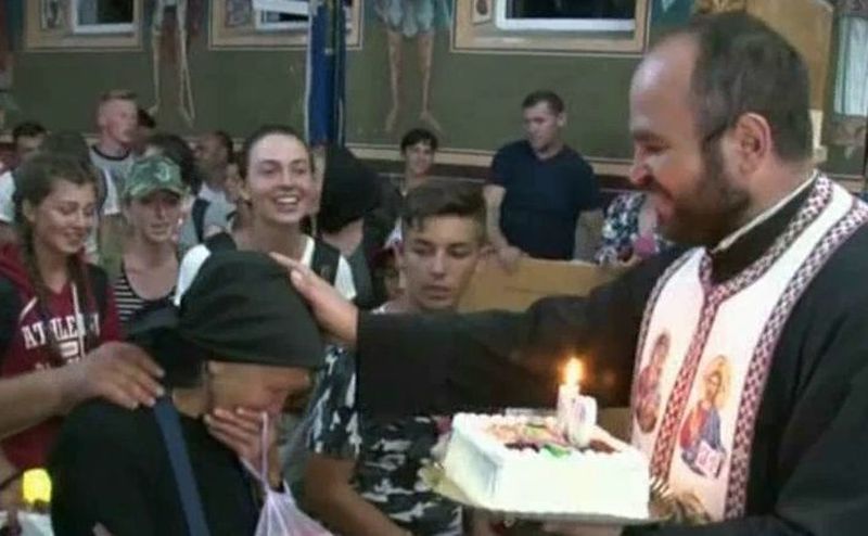 Aseara, pelerinii care au batut cei 50 de kilometri pe jos, s-au oprit la biserica din sat, unde batrana a avut parte de o surpriza: preotul a asteptat-o cu un tort. Biata femeie a izbucnit in lacrimi.