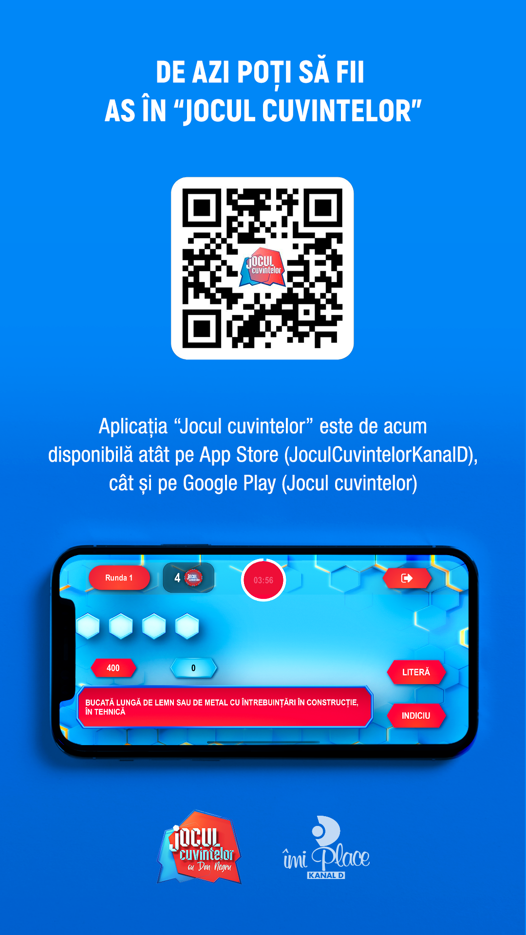 Descarcă aplicaţia şi fii parte din fenomenul care a cucerit România: “Jocul cuvintelor cu Dan Negru”! Aplicaţia poate fi downladata pe mobil, accesand urmatorul link https://apps.kanald.ro/install-jocul-cuvintelor