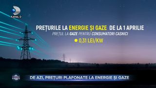 Stirea "De azi, prețuri plafonate la energie și gaze" difuzata in cadrul Stirilor KANAL D din 1 04 2022