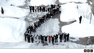 În orașul Kazan din centrul Rusiei, aproximativ 60 de copii și personalul unui spital au fost fotografiați afară, în zăpadă, formând un „Z” uriaș în fața clădirii lor.