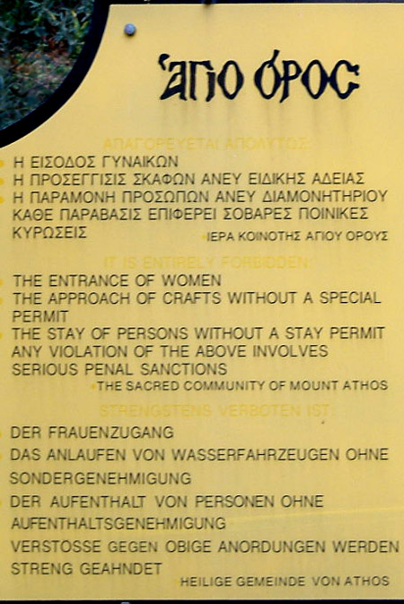 Preotii din Sfantul Munte, spun intr-un glas: "Daca femeile intra aici, vine sfarsitul lumii. Asa ne-au invatat batranii nostri, asa au profetit sfintii nostri, care erau facatori de minuni, cuviosi, asceti sau nebuni pentru Hristos."