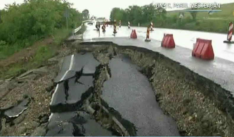 Un crater urias, cu o adancime de peste 2 metri a distrus un drum national dintre Salaj si Maramures. Pamantul a luat-o la vale de aproximativ 2 luni, spun soferii, iar drumarii nu dau semne ca ar vrea sa repare soseaua prea curand.