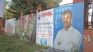 Chipul iubitului Elenei Udrea apare peste tot în Pipera, asta pentru că se ocupă de intermedierea tranzacţiilor imobiliare şi îşi face reclamă folosindu-se de postere gigant