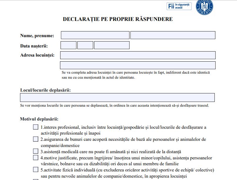 Este știut faptul că românii nu mai pot părăsi locuința fără declarația pe propria răspundere. Acum documentul a suferit modificări. Află cum să-l completezi corect!