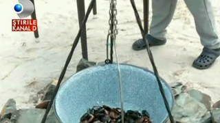In nordul statiunii Mamaia, un alt restaurant imbie turistii cu o reteta traditional pescareasca- midii in ceaun, fierte la foc de lemne, chiar pe nisip.