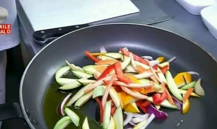 Manuel Betto: punem niste ulei de masline intr-o tigaie, punem niste ceapa rosie si alba si punem si legumele pe care le-am taiat, punem putina sare, piper si mergem la gatit si cu acestea.