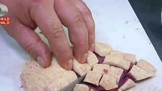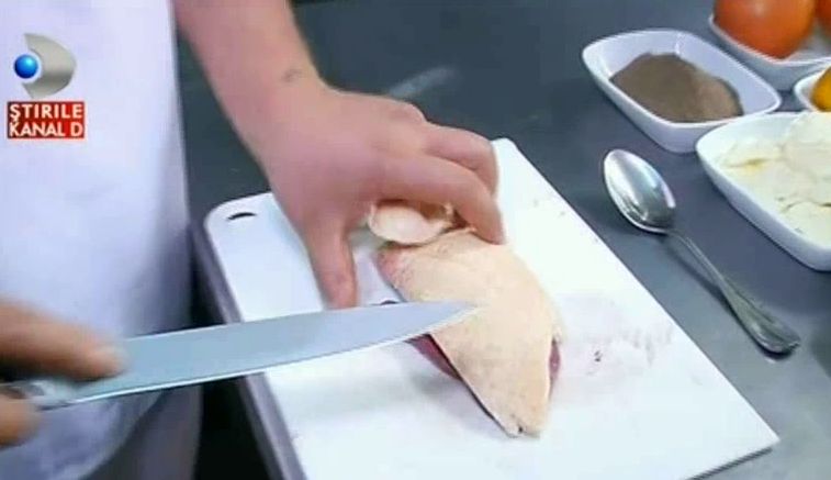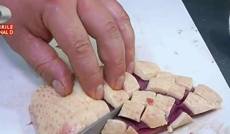 Manuel Betto: prima data scoatem pieptul de rata, scoatem putin pielea, dar partea aceasta trebuie lasata pielea. Partea aceasta de piele e o parte foarte grasa si trebuie sa avem o carne mai frageda pentru ca grasimea tine mai frageda carnea.