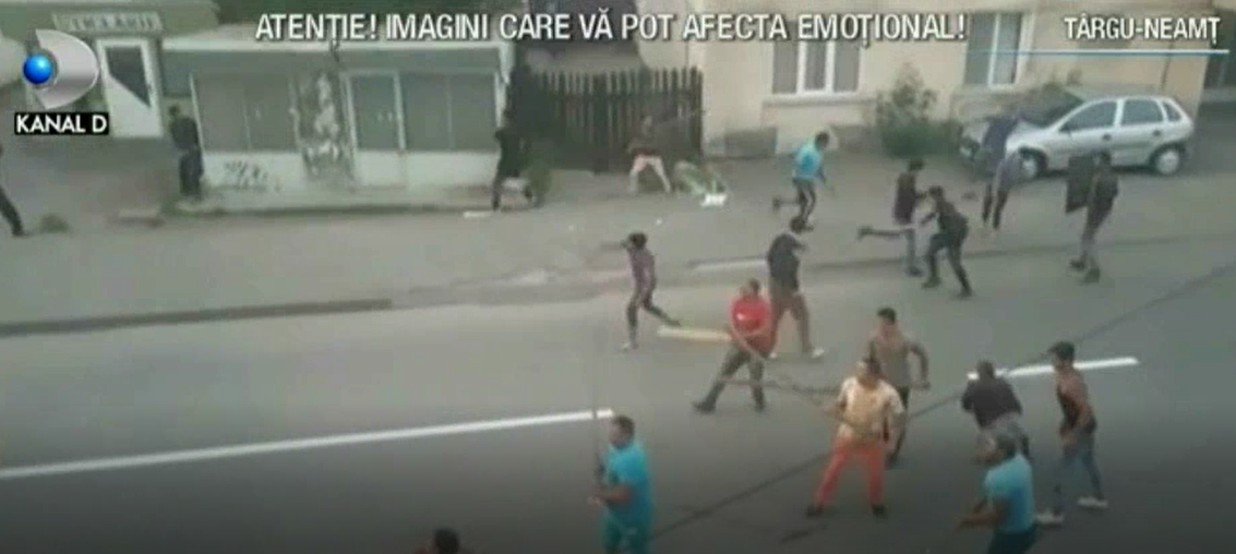 Descinderi in forta la clanurile de romi care s-au razboit cu topoarele, in strada, la Targu - Neamt