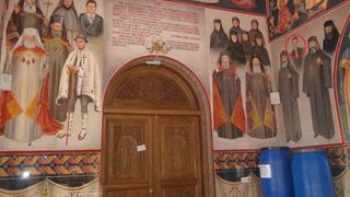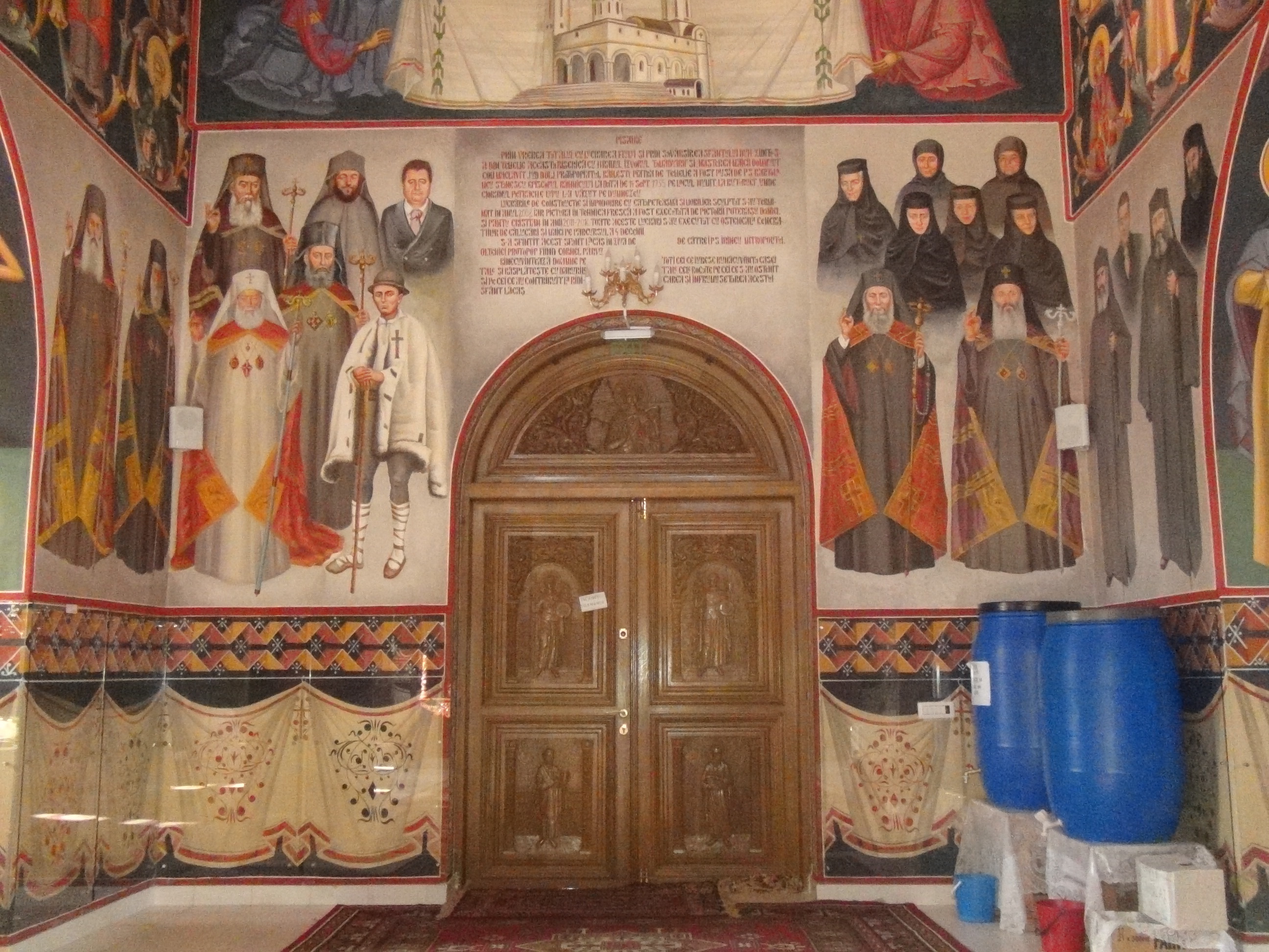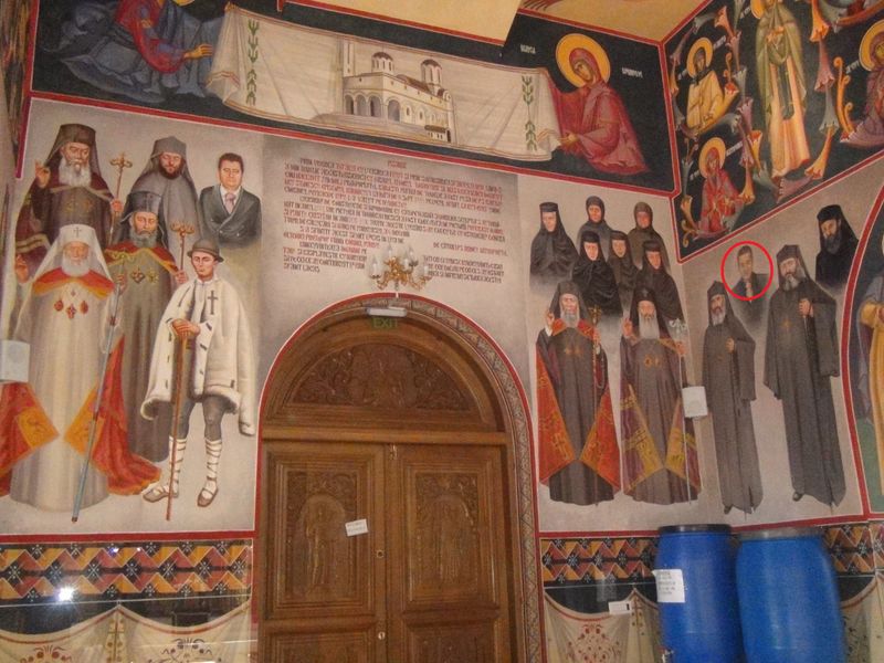 Pe peretele ocupat pe vremuri doar de chipul lui Gigi Becali acum se gasesc sase maicute si doua inalte fete bisericesti, in timp ce si portretul lui Petrache Lupu a fost "restrans", langa el aparand patru inalti preoti si un om de afaceri! De notat ar fi faptul ca Gigi Becali ar fi cheltuit pentru ridicarea manastirii cel putin un milion de euro!