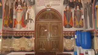 6 din 7 | Desi a dat un milion de euro pentru ridicarea manastirii de la Maglavit, Gigi Becali nu mai are portret mare in interiorul bisericii! Chipul miliardarului este "ascuns" acum, in lateral, printre trei preoti! VIDEO si FOTO EXCLUSIV