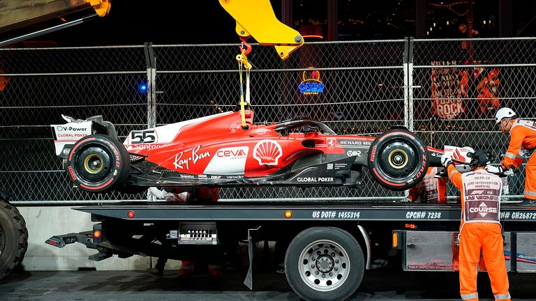Here’s the moment Carlos Sainz drove over THAT drain cover 👀 #F1 #LasVegasGP pic.twitter.com/zBrjpPVgJH