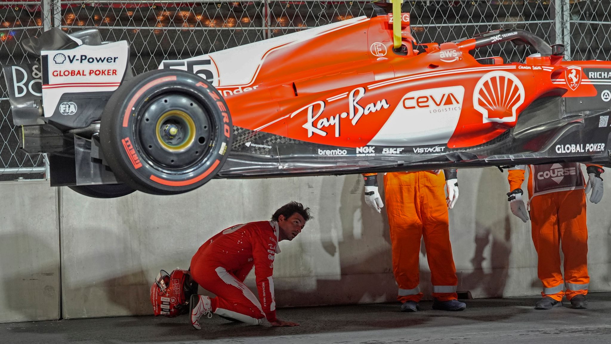 3 din 4 | Dezamăgire toatală după primele două antrenamente din Las Vegas! Monopostul Ferrari s-a făcut praf din cauza circuitului. Mii de spectatori au fost trimiși acasă