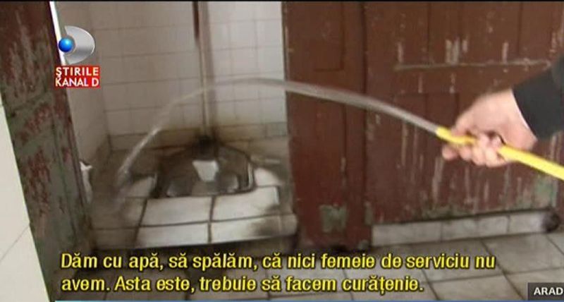 "Astea sunt conditii de munca? Chiuveta aceasta? Paianjenii ne cad in cap, pe vasul de toaleta nici nu te poti pune", spun angajatii.