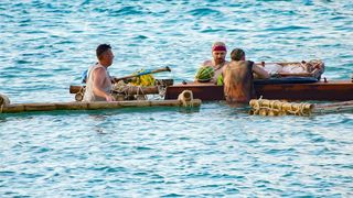 Aceștia au fost nevoiți să construiască plute din bambus cu care să ajungă la o platformă, în apa oceanului, unde erau aasezate provizii atât de necesare pe insulă.