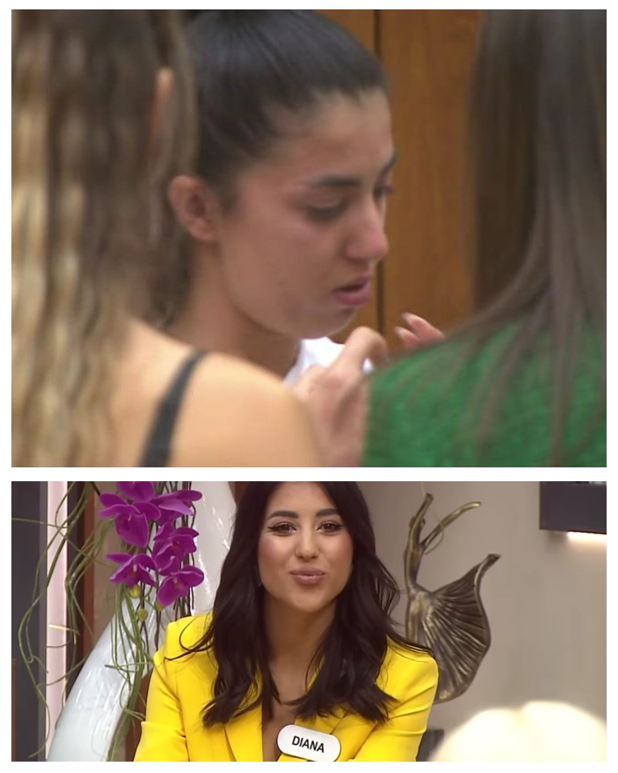 După dispariția sa din Casa Iubirii, timp în care concurenții nu au reușit să dea de ea nici la telefon, Diana a apărut în Casă plină de vânătăi și cu lacrimi în ochi.