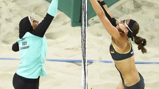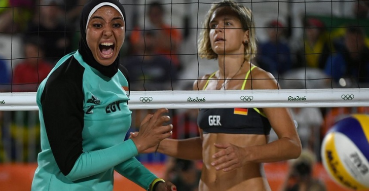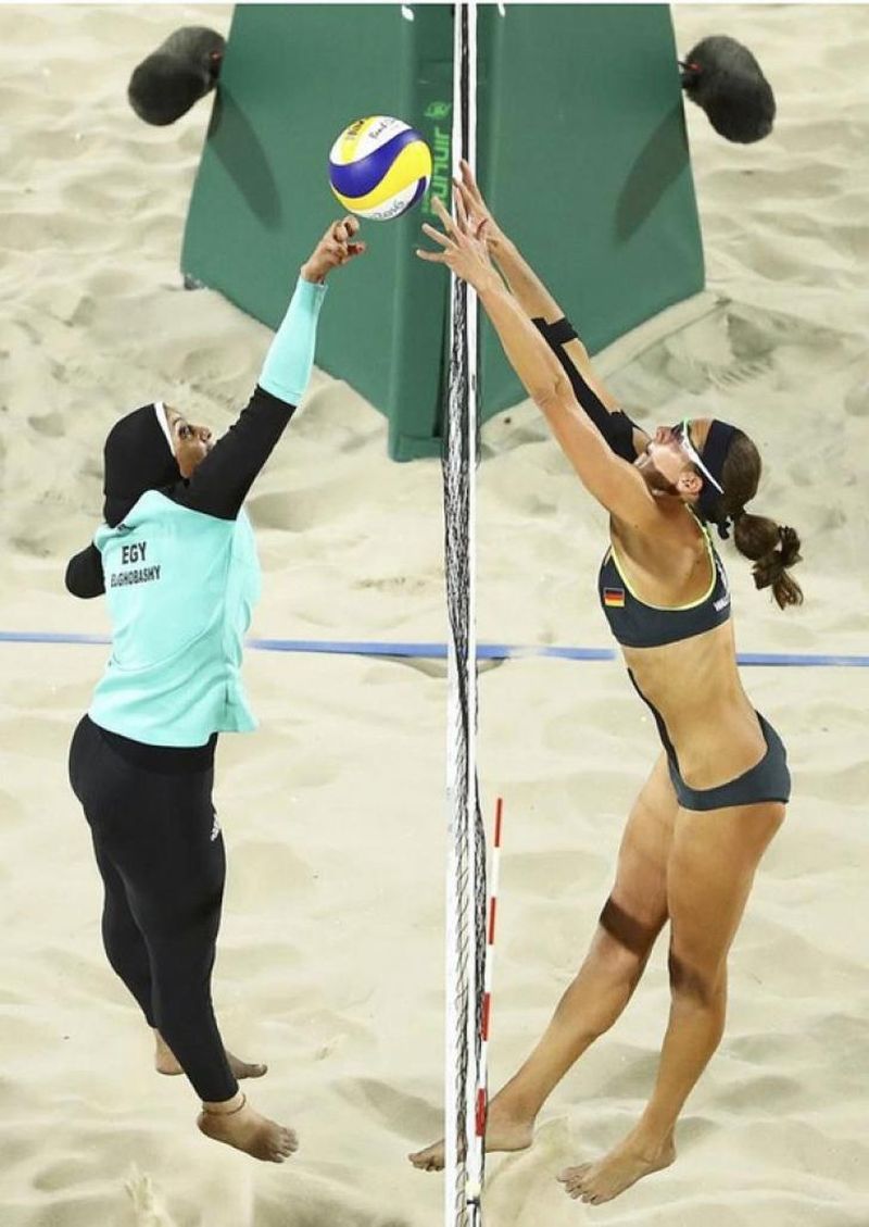 Voleiul de plaja este un sport rapid, jucat sub soare si renumit pentru tinuta sa spectaculoasa: bikini pentru femei si pantaloni scurti pentru barbati. Insa aceste fotografii dezvaluie diferentele culturale dintre natiunile participante la Jocurile Olimpice de la Rio. Jucătoarele de volei pe plajă Nada Meawad şi Doaa Elghobashy din Egipt a pasit pe nisip purtand haine lungi si avand capul acoperit.