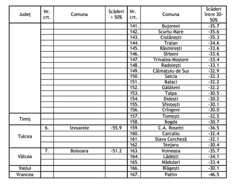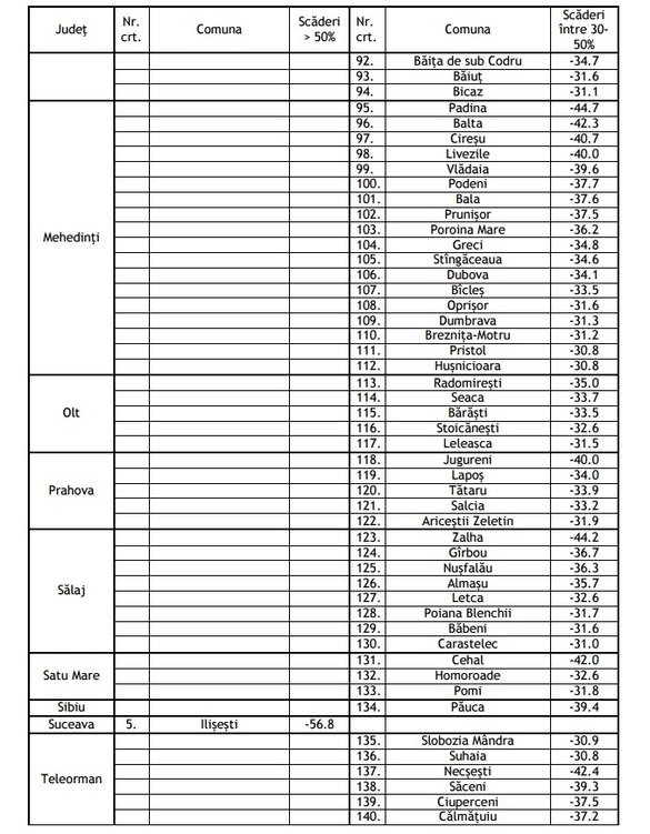 8 din 8 | Din 1990 si pana in prezent, peste 220 de orase si comune au pierdut intre 20 si 50% din numarul de locuitori