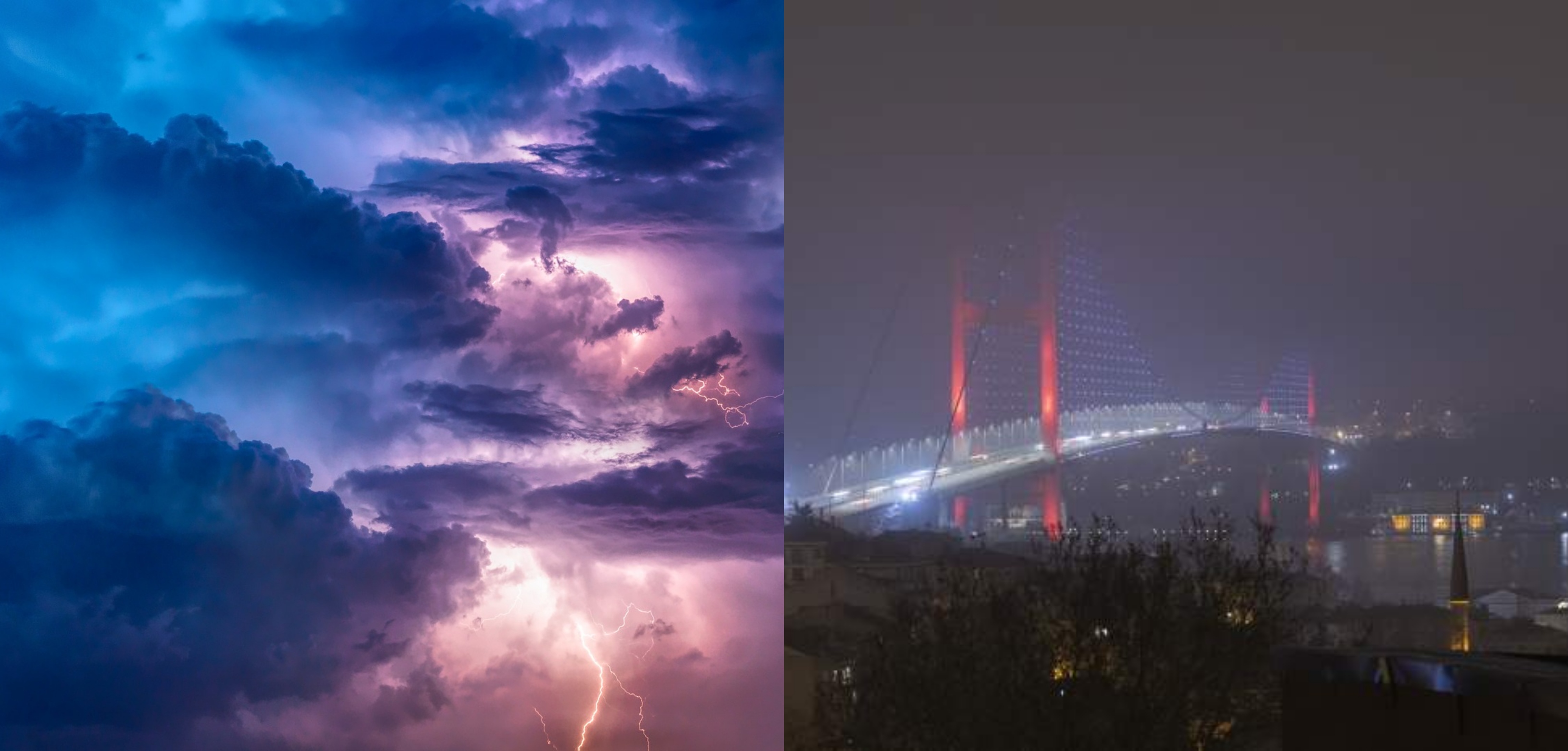 După soarele strălucitor, spre amiază, aversele au pus stăpânire pe Istanbul. Chiar înainte de furtună, norii au acoperit brusc orașul, iar ziua s-a transformat în noapte.