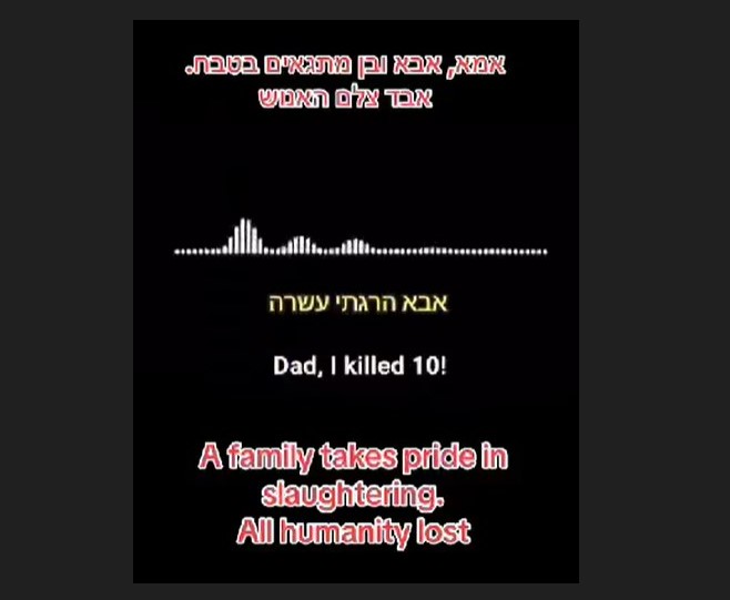 O discuție telefonică între un terorist Hamas și tatăl său arată, în mod evident, ura pe care aceștia o resimt față de evrei. Fiul se laudă la telefon cu crimele pe care le-a comis. Care este reacția tatălui?