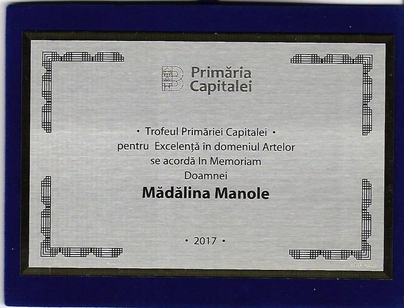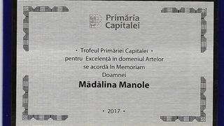 Madalina Manole a fost premiata post-mortem de Gabriela Firea cu „Trofeul Primariei Capitalei pentru Excelenta in domeniul Artelor”, in cadrul unui eveniment care a avut loc la Circul Metropolitan din Bucuresti, la finalul anului trecut. Surprinzator, pe scena a urcat, pentru a ridica trofeul, Daniel Gheorghe, cunoscut ca un apropiat al artistei. Ce s-a intamplat mai departe cu diploma ne lamureste chiar Daniel Gheorghe.